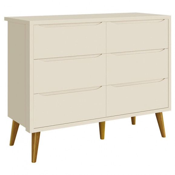 Cômoda Infantil 6 Gavetas Retrô Theo Areia Acetinado com Pés Madeira – Reller