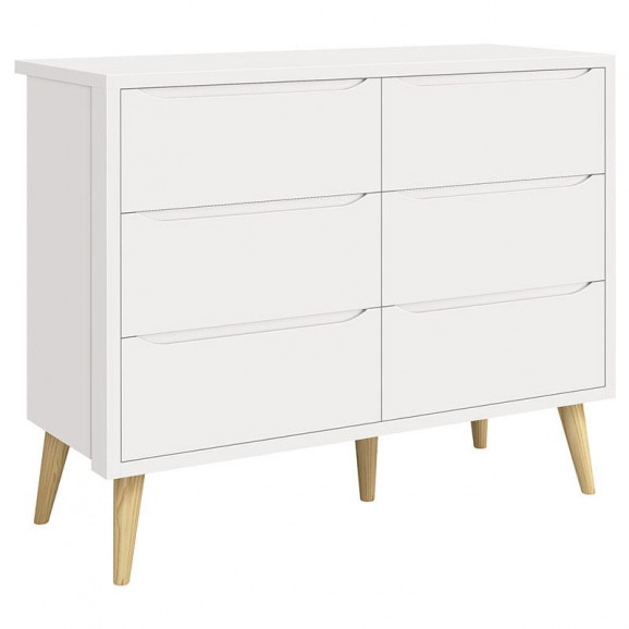 Cômoda Infantil 6 Gavetas Retrô Theo Branco Acetinado com Pés Natural – Reller