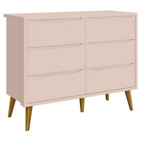 Cômoda Infantil 6 Gavetas Retrô Theo Rosa Acetinado com Pés Madeira – Reller