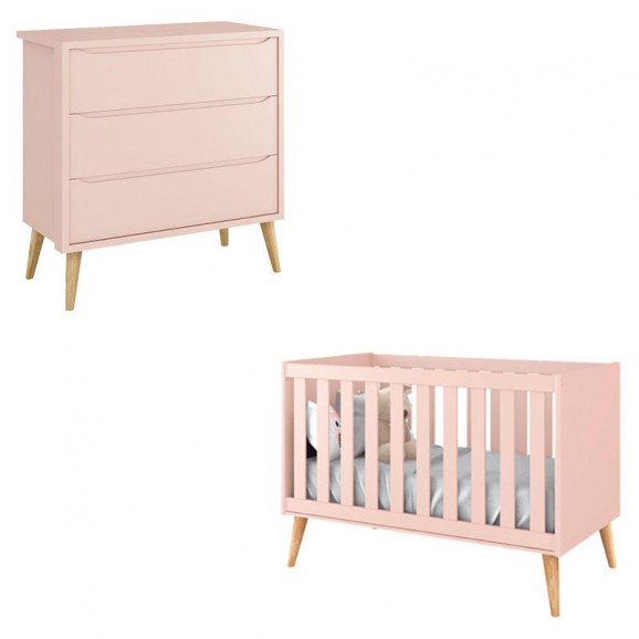 Berço Americano Theo Rosa com Pés Madeira Natural – Reller