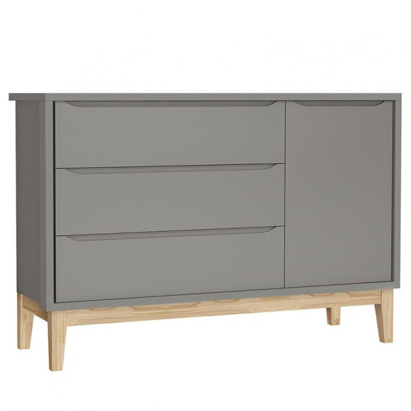 Cômoda Infantil New Classic com Porta Cinza com Pés Madeira Natural – Reller