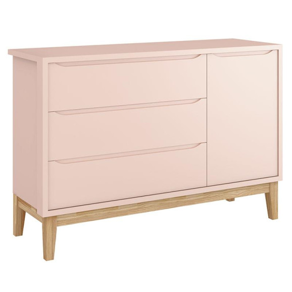 Cômoda Infantil New Classic com Porta Rosa com Pés Madeira Natural – Reller