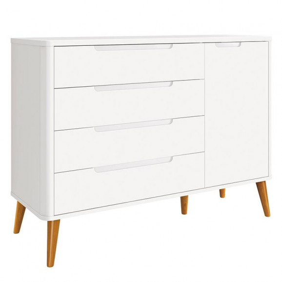 Cômoda Infantil Retrô Boom Branco com Pés Amadeirado - Reller