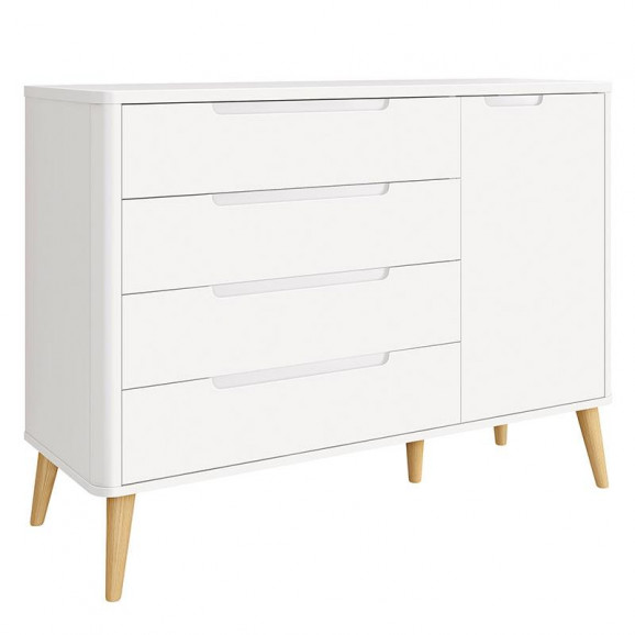 Cômoda Infantil Retrô Boom Branco com Pés Madeira Natural - Reller