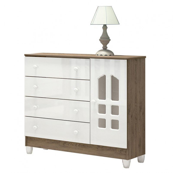 Cômoda Infantil Selena Branco Acetinado Amadeirado – Carolina
