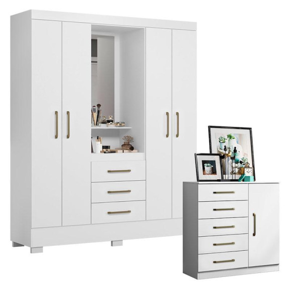 Cômoda Milão e Guarda Roupa Solteiro Paris 2045150 Branco - Aramóveis