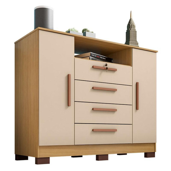 Apresentamos a Cômoda da linha Mirassol, um elegante e funcional móvel de quatro gavetas e duas portas, projetado para oferecer soluções práticas de armazenamento e estilo para o seu ambiente, tornando seu dia a dia mais organizado. Com um design inovador, a cômoda combina perfeitamente com diversos estilos de decoração, proporcionando um toque moderno ao seu espaço. Fabricado pela Incorplac com materiais de ótimas qualidades para maior durabilidade do móvel. Aproveite!