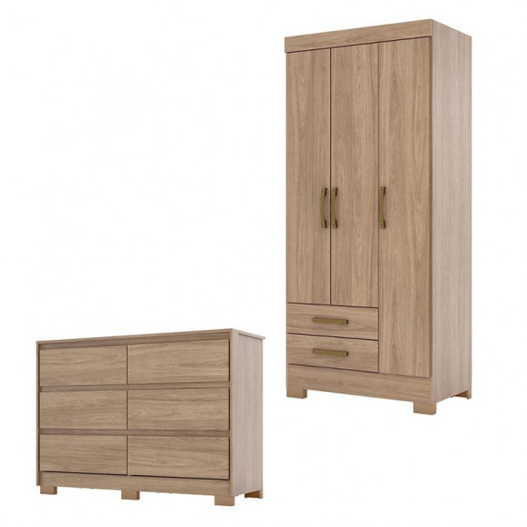 Cômoda Ravenna e Guarda Roupa Solteiro BE16 Jequitibá Brilho - Henn
