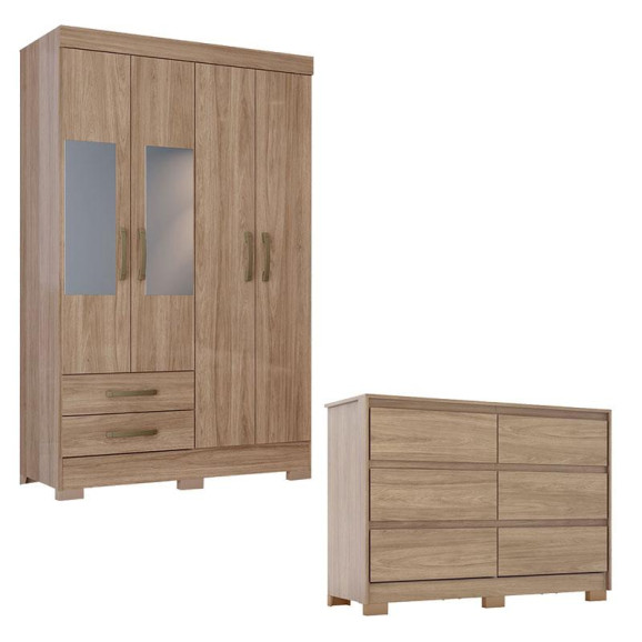 Cômoda Ravenna e Guarda Roupa Solteiro Fabuloso Jequitibá Brilho com Espelho - Henn