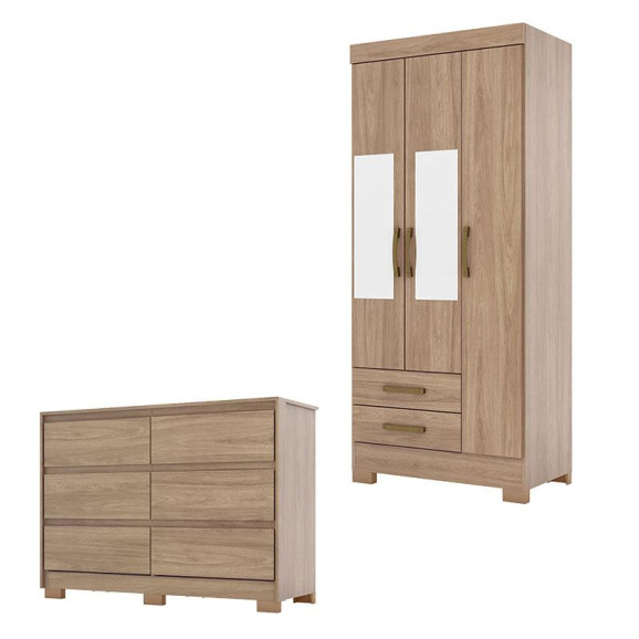 Cômoda Ravenna e Guarda Roupa Solteiro Sensi Jequitibá Brilho com Espelho - Henn