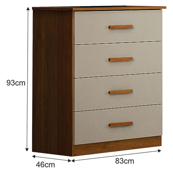 Cômoda Rubi 4 Gavetas Cinamomo Off White – Leifer Móveis