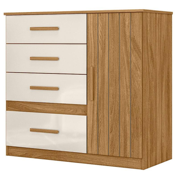 Está montando seu quarto? Apresentamos para você esta bela cômoda da linha Vênus. Possuindo uma porta, apresenta detalhe frisado agregando mais charme e sofisticação. Contando com quatro gavetas equipadas com corrediças metálicas, proporciona uma abertura suave e segura. Os puxadores em MDF dão um acabamento refinado, dando um design moderno. Fabricado pela Moval, é desenvolvido em MDP de alta qualidade, combinando durabilidade e um visual minimalista. Complementando seu quarto de forma organizada e elegante, aproveite!