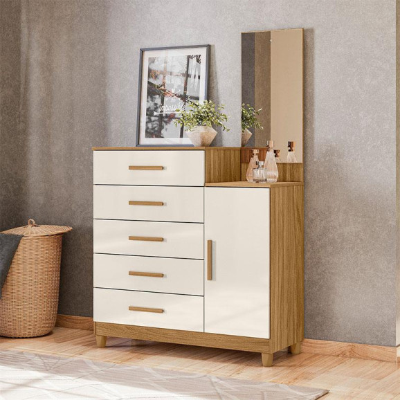 Começou a montar seu quarto? Então apresentamos para você esta bela cômoda da linha Lisboa. Contando com uma porta e cinco gavetas equipadas com corrediças metálicas, garante uma abertura suave. Os puxadores em MDF complementa o visual moderno, enquanto os pés em PVC proporcionam mais estabilidade e facilidade na hora da limpeza. O destaque é o painel com espelho agregando mais estilo e praticidade para o dia a dia. Fabricado pela Moval, é desenvolvido em MDP de qualidade, sendo a espelho ideal para quem está procurando organização, funcionalidade e um toque de sofisticação para compor o seu quarto, aproveite!