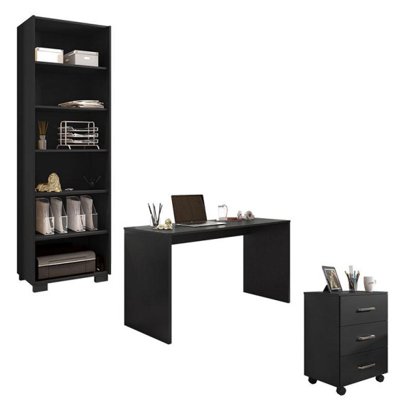 Conjunto para Escritório Gávea com Gaveteiro Petrópolis e Livreiro Office Preto Trama - Móveis Leão