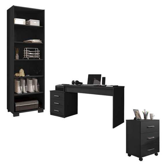 Conjunto para Escritório Petrópolis com Livreiro Office Preto Trama - Móveis Leão