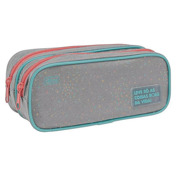 Estojo Escolar Infantil Duplo Académie Dots Cinza - Tilibra