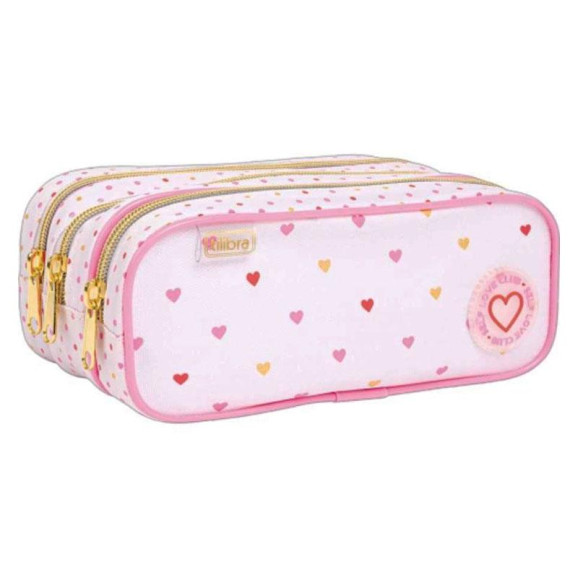 Estojo Escolar Infantil Triplo Académie Coração Metalizado Rosa - Tilibra