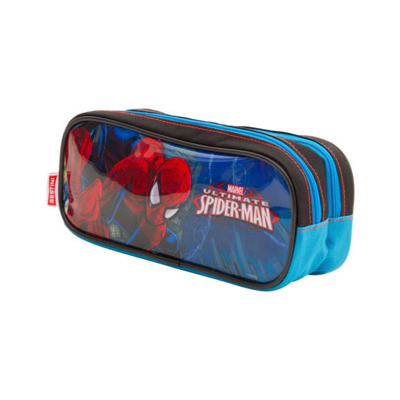 O Estojo 2 Compartimentos Spiderman 17Z surpreendendo novamente essa nova colecao com um visual descolado. Produzido em Poliester, material resistente com frente em PVC, facil de limpar. Possui fechamento por ziper com puxadores de metal personalizado para voce organizar ainda seus lapis e canetas.
