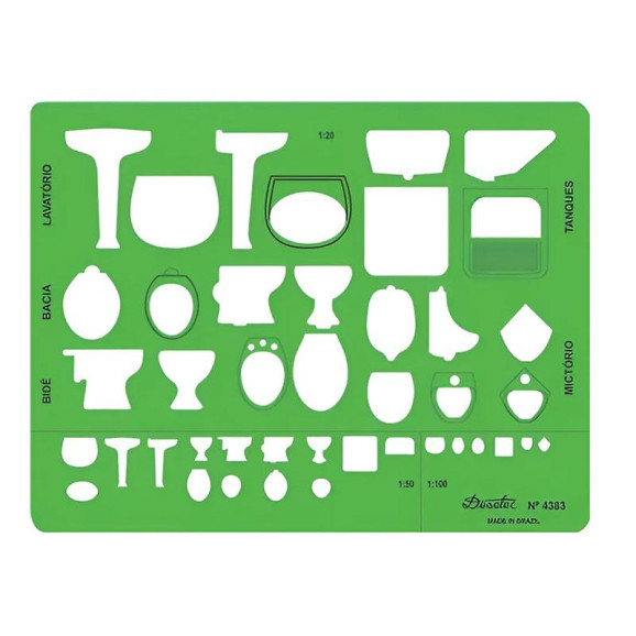 O Gabarito Profissional para Arquitetura Sanitários da Desetec é perfeito para oferecer precisão e praticidade em projetos técnicos, artísticos ou profissionais. Desenvolvido em astralon na cor verde, possui espessura de 0,75mm e ressalto para traçado a tinta, aproveite!