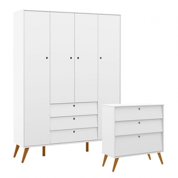 Guarda Roupa 4 Portas e Cômoda Gaveteiro Retro Gold Branco Eco Wood – Matic