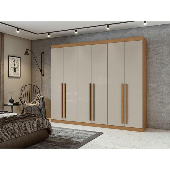 Guarda Roupa Casal Ambiente Bertha 6 Portas Amêndoa Clean Off White - Lopas