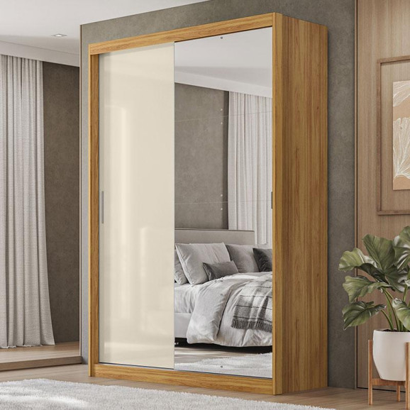 Guarda Roupa Casal Ambiente Riva 22515K com Espelho Cinamon Touch Off White Flex - Demóbile