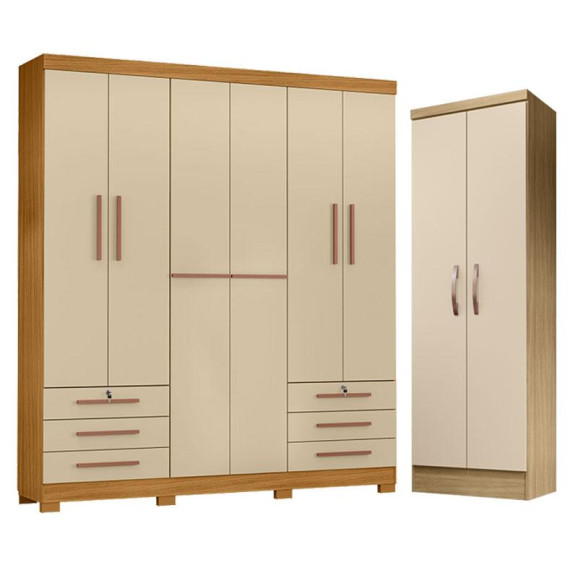 Guarda Roupa Casal Londres e Armário Multiuso New Egito Carvalho Americano Off White - Incorplac