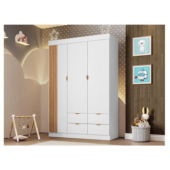 Guarda Roupa Infantil Ambiente Ayla 3 Portas Branco Acetinado - Phoenix