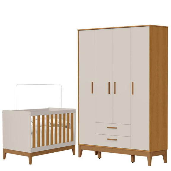 Guarda Roupa Infantil Flip 4 Portas com Berço Americano Flip Areia Acetinado Savana - Reller