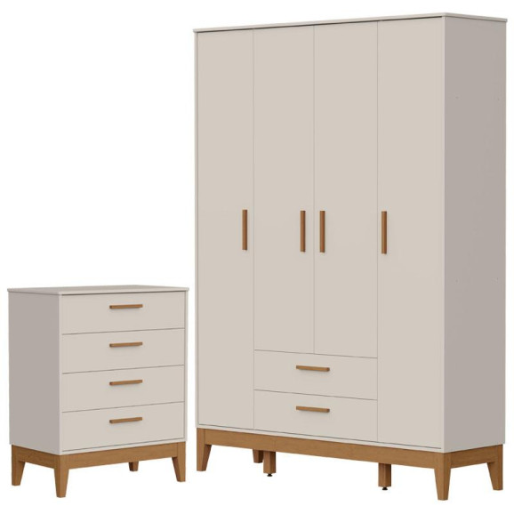 Guarda Roupa Infantil Flip 4 Portas com Cômoda Gaveteiro Infantil Flip Areia Acetinado - Reller