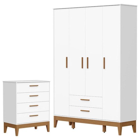 Guarda Roupa Infantil Flip 4 Portas com Cômoda Gaveteiro Infantil Flip Branco Acetinado - Reller