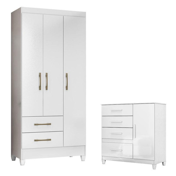 Guarda Roupa Infantil Lima e Cômoda Vênus com Pés Branco Flex – Moval