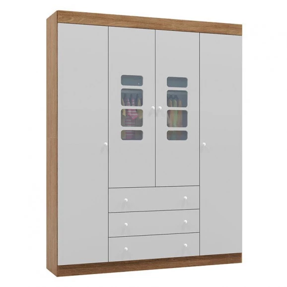 Guarda Roupa Infantil Lis 4 Portas Branco Brilho Carvalho - Canaã