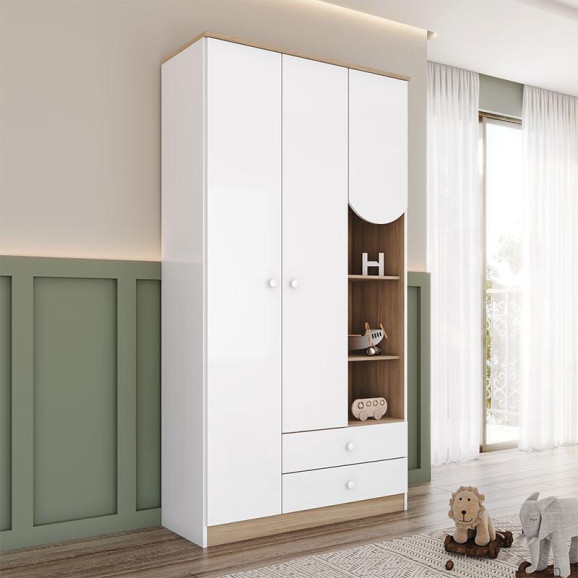 Guarda Roupa Infantil Magia Ambiente 3 Portas Branco Jequitibá HP - Henn