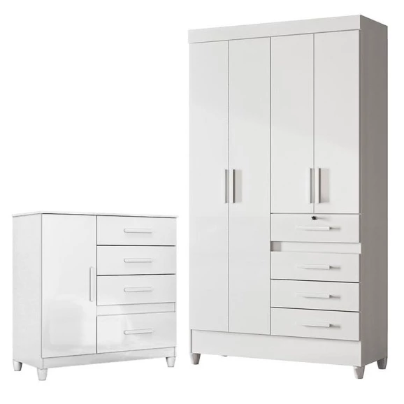 Está querendo renovar seu quarto com o melhor custo benefício do mercado. Apresentamos o Guarda Roupa Infantil Sobral e Cômoda Vênus fabricados pela Moval. Guarda Roupa com um inovador sistema flex com quatro opções de cores na hora da montagem: branco/rosa/azul/lilás, possui 04 portas, 04 gavetas sendo a primeira com fechadura e chave ideal para guardar itens pessoais com segurança, corrediças metálicas, puxadores em MDF, cabideiros em alumínio para melhor organização interna e pés em PVC. A cômoda possui 04 gavetas com corrediças metálicas, 01 porta com detalhes frisados, pés em PVC e puxadores em MDF. Fabricado com materiais de alta qualidade que garante resistência e durabilidade ao produto. Confira mais detalhes e aproveite!