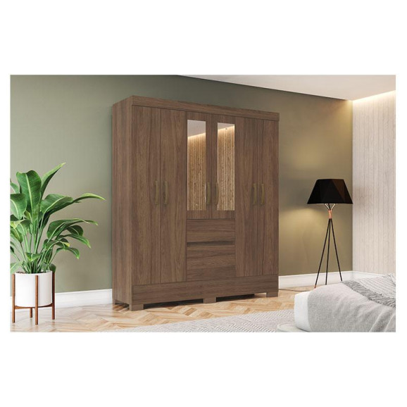 Guarda Roupa Solteiro Ambiente BS04 Castanho HP com Espelho – Briz Móveis