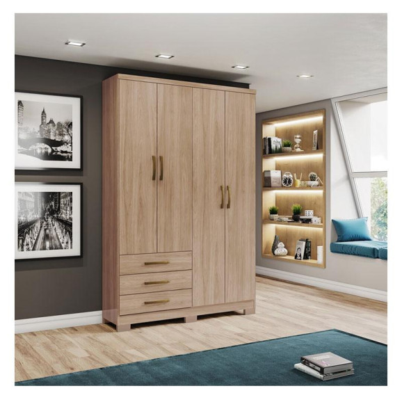 Guarda Roupa Solteiro Ambiente City 4 Portas Jequitibá Brilho - Henn