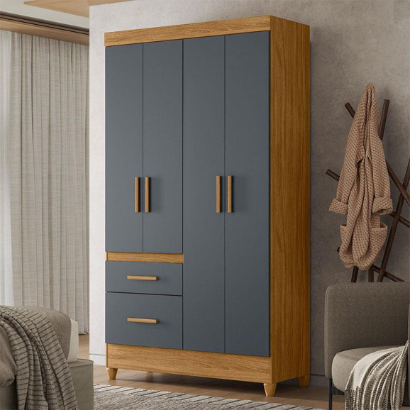 Guarda Roupa Solteiro Ambiente Madri 4 Portas Freijó Cinza - Moval