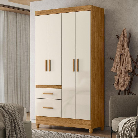 Guarda Roupa Solteiro Ambiente Madri 4 Portas Freijó Off White - Moval