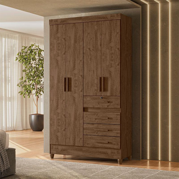 Guarda Roupa Solteiro Ambiente Sobral 4 Portas Castanho Wood - Moval