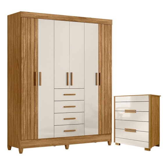 Guarda Roupa Solteiro Aruba e Cômoda Dhara Freijó Off White – Moval