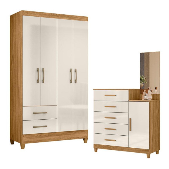 Organize seu quarto com elegância e o melhor custo benefício do mercado. Apresentamos o Guarda Roupa Solteiro Chile e Cômoda Lisboa fabricados pela Moval. Guarda Roupa com 04 portas e 02 gavetas com corrediças metálicas, puxadores na cor bronze, cabideiro em madeira para melhor organização interna, espaço ideal para roupas longas e pés em PVC. A cômoda possui 05 gavetas com corrediças metálicas, painel com espelho, 01 porta, puxadores em MDF na cor bronze, pés em PVC e um design moderno que combina com qualquer decoração. Fabricado com materiais de alta qualidade que garante resistência e durabilidade ao produto. Confira mais detalhes e aproveite!