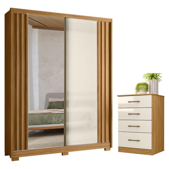 Está montando seu quarto? Apresentamos para você este belo conjunto composto pelo guarda roupa da linha Colorado e a cômoda da linha MS913. O guarda roupa com duas portas deslizantes, sendo uma porta com espelho e com detalhe ripado em MDF dá um toque sofisticado. Internamente, oferece três gavetas com corrediças telescópicas e pés em PVC. Complementando o conjunto, a cômoda conta com quatro gavetas com corrediças metálicas, sendo a última gaveta maior. Fabricados pela Moval, são desenvolvidos em MDP, ideal para quem está buscando otimizar o quarto com elegância e eficiência. Aproveite e garanta já o seu!
