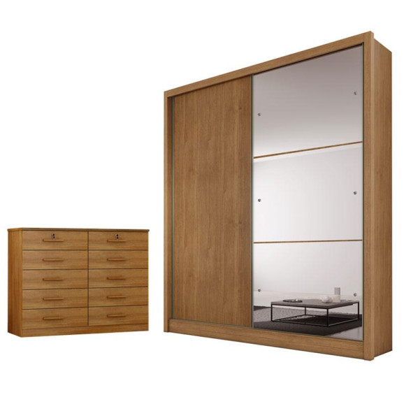Guarda Roupa Solteiro Dante com Nicho e Espelho e Gaveteiro Milão com Chave Cumaru 23 - Novo Horizonte