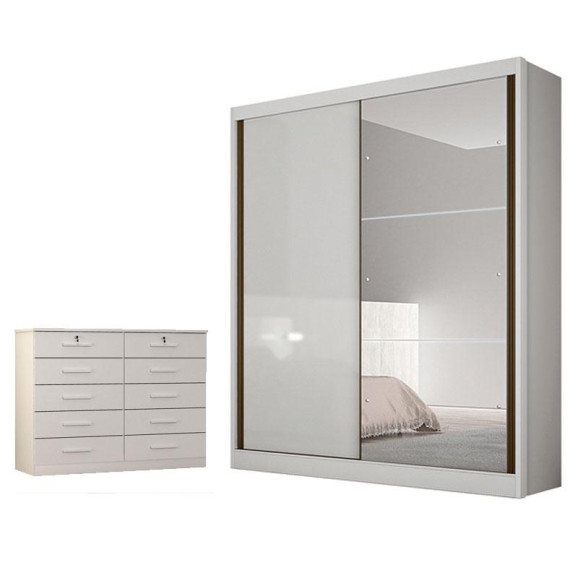 Guarda Roupa Solteiro Dante 2 Portas Neve com Espelho – Novo Horizonte