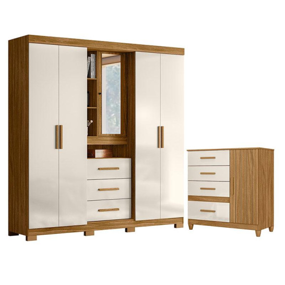 Guarda Roupa Solteiro Eldorado e Cômoda Vênus com Pés Freijó Off White – Moval