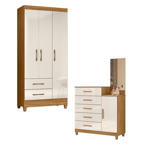 Guarda Roupa Solteiro Lima e Cômoda Lisboa Freijó Off White – Moval