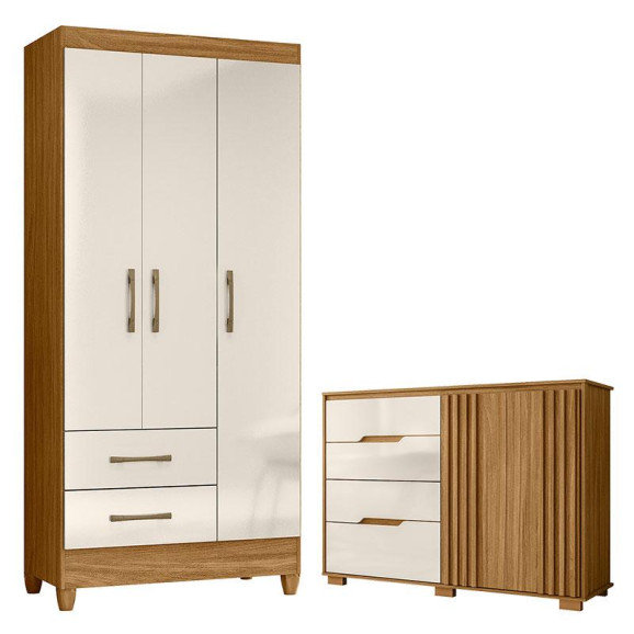 Guarda Roupa Solteiro Lima e Cômoda Texas Freijó Off White – Moval