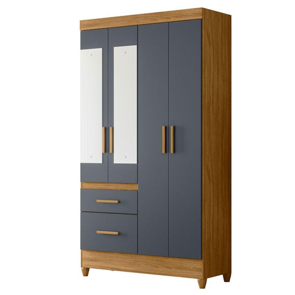 Guarda Roupa Solteiro Madri 4 Portas Freijó Cinza com Espelho - Moval