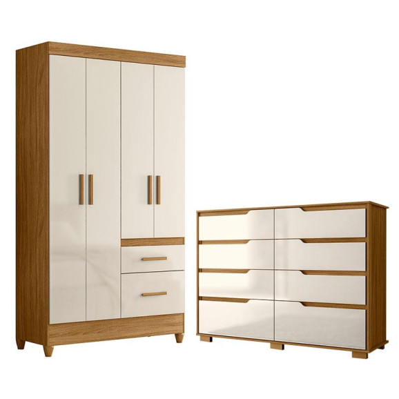 Guarda Roupa Solteiro Madri e Cômoda Georgia Freijó Off White – Moval